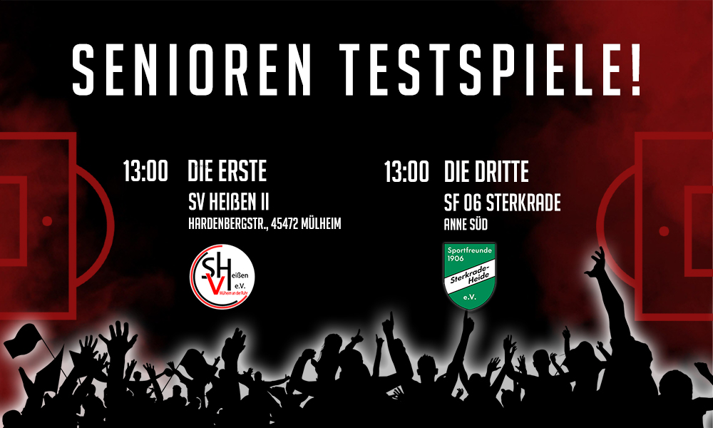 Am morgigen Sonntag sind unsere Seniorenmannschaften wieder im Vorbereitungs-Einsatz. Die Erste: Testspiel Sonntag, 28.01.2024 SV Heißen II 13:00 Uhr Hardenbergstr., 45472 Mülheim Die Dritte: Testspiel Sonntag, 28.01.2024 SF 06 Sterkrade…