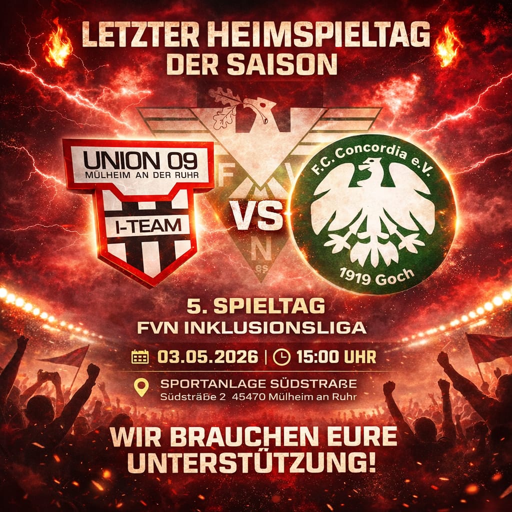 Das I-Team vom TuS Union 09 Mülheim kämpft am letzten Spieltag im direkten Duell gegen Concordia Goch um die Meisterschaft in der FVN Inklusionsliga.